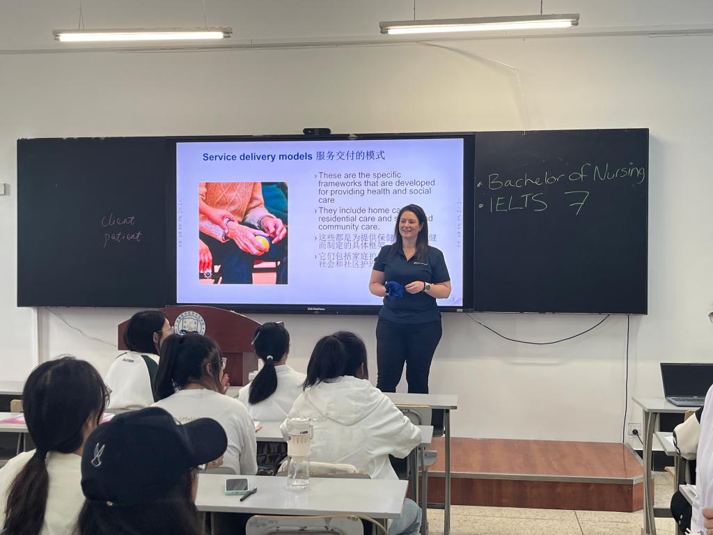 访问期间,两位专家走进课堂,为同学们讲授《老年身心健康护理》、《有效发展老年护理工作》、《人际沟通》、《个性化护理》等课程,积极与与同学们互动,增强了学生的全球视野和职业竞争力,给同学们带来高质量的课程体验。