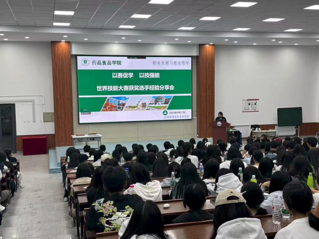 为充分发挥职业技能大赛的示范引领作用,进一步激发全院学子专精技能、刻苦学习的热情,9月17日,药品食品学院举办“以赛促学 以技强能”世界职业院校技能大赛获奖选手经验分享会。2025级全体学生通过线下线上相结合的方式积极参与,沉浸式聆听获奖选手的成长奋斗历程与赛场实战感悟。