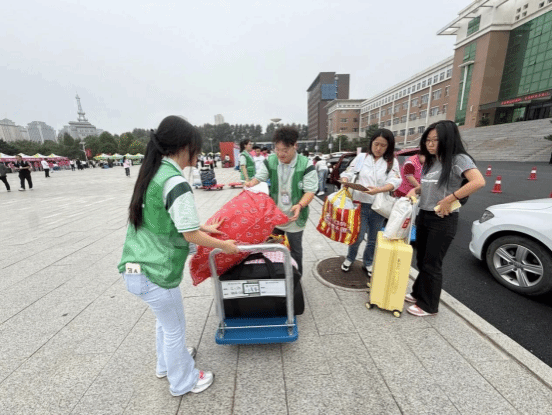 学院师生志愿者组成的迎新“服务队”