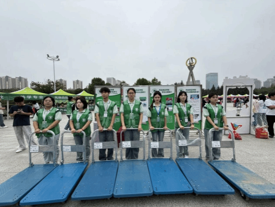志愿者们身着绿色马甲